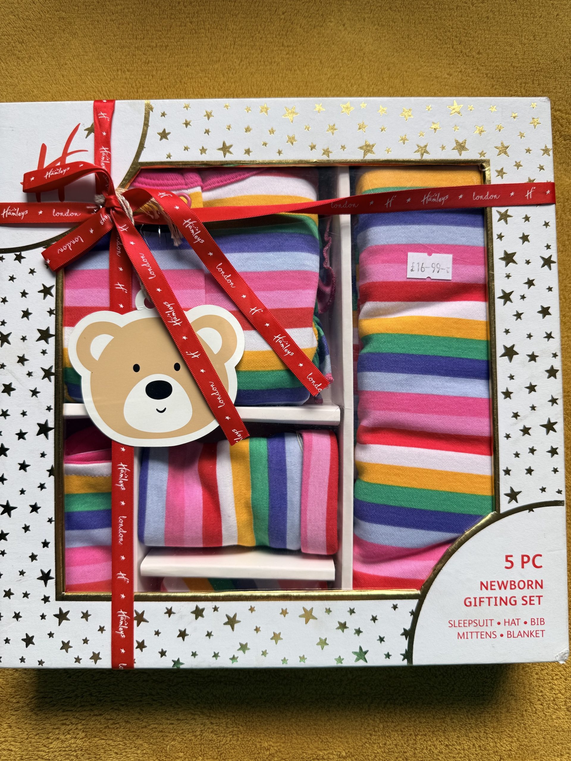 H by HAMLEYS * SLEEPSUIT * HAT *BIB * MITTENS * BLANKET (multi colour)